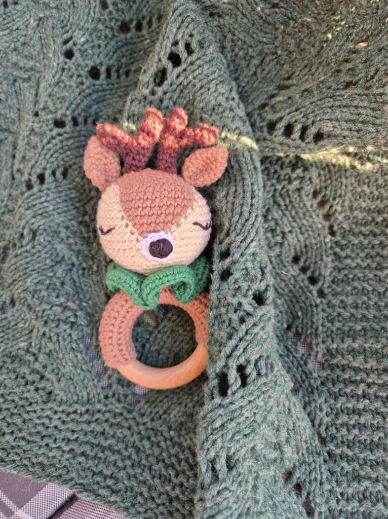 Bonjour ! Aujourd’hui, je vous montre le petit hochet cerf au crochet que j’ai fait pour le bébé de ma cousine qui est né cet automne. Je vous raconte !
